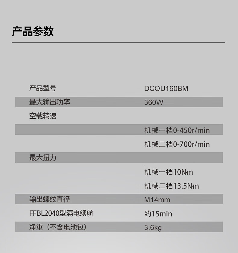 商品规格:DCQU160(BM型)20V4.0ah*2