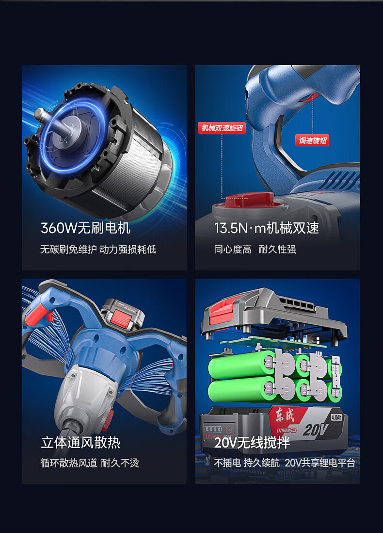 商品名称:东成充电式无刷搅拌器DCQU160(BM型)20V4.0ah*2