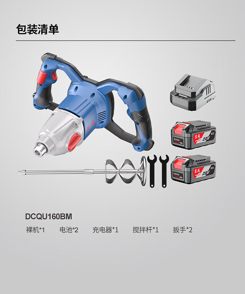 包装清单:1东成充电式无刷搅拌器DCQU160(BM型)20V4.0ah*2