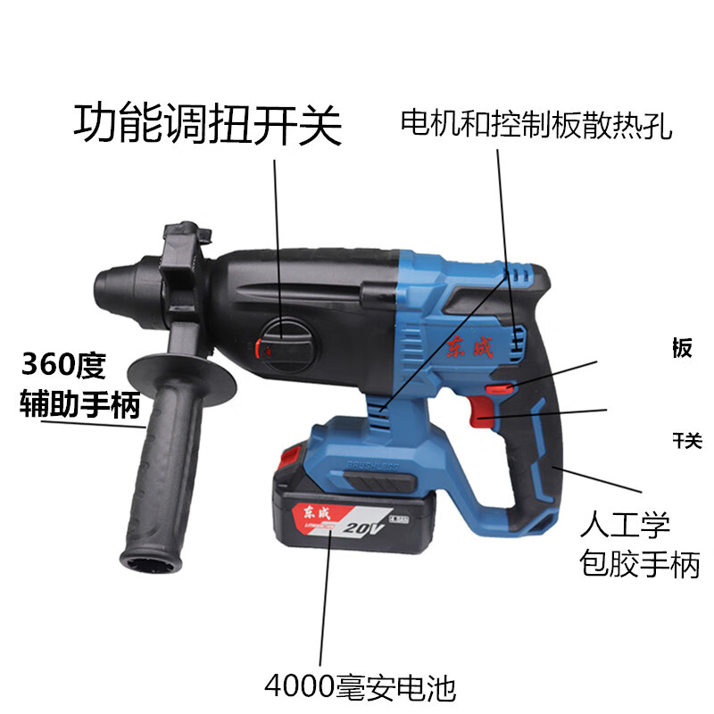 商品名称:东成充电式无刷电锤DCZC22(B型)20V4.0ah*2三用电捶电镐东城