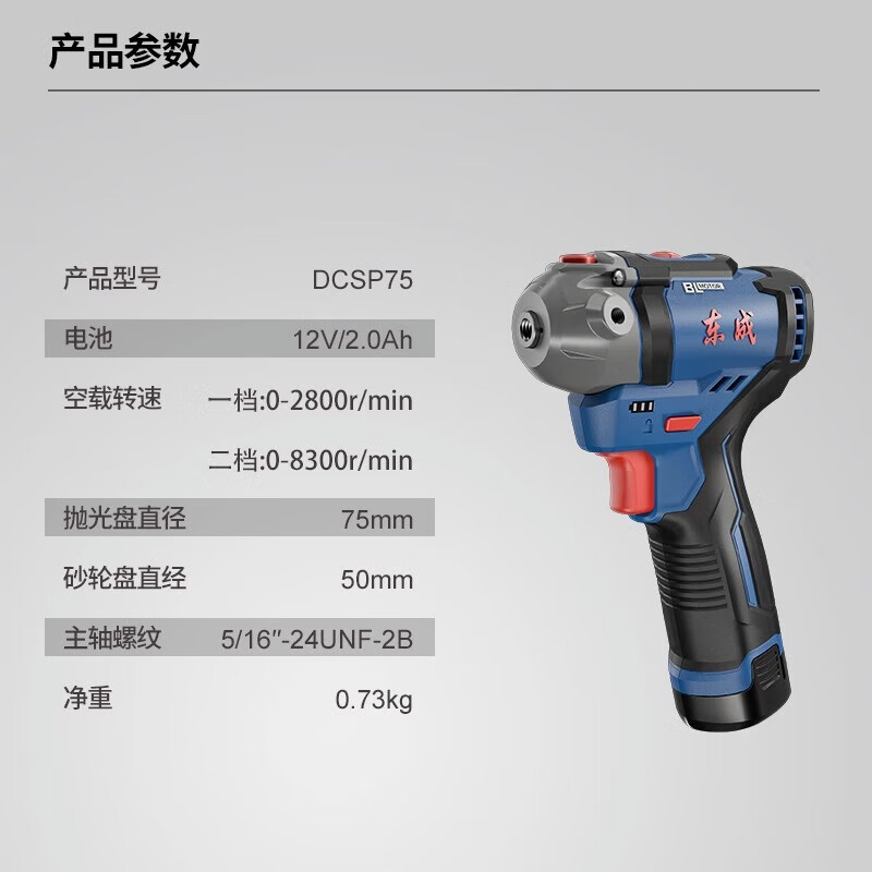 商品名称:东成充电式无刷抛光机DCSP75(EK型)12V2.0ah*2