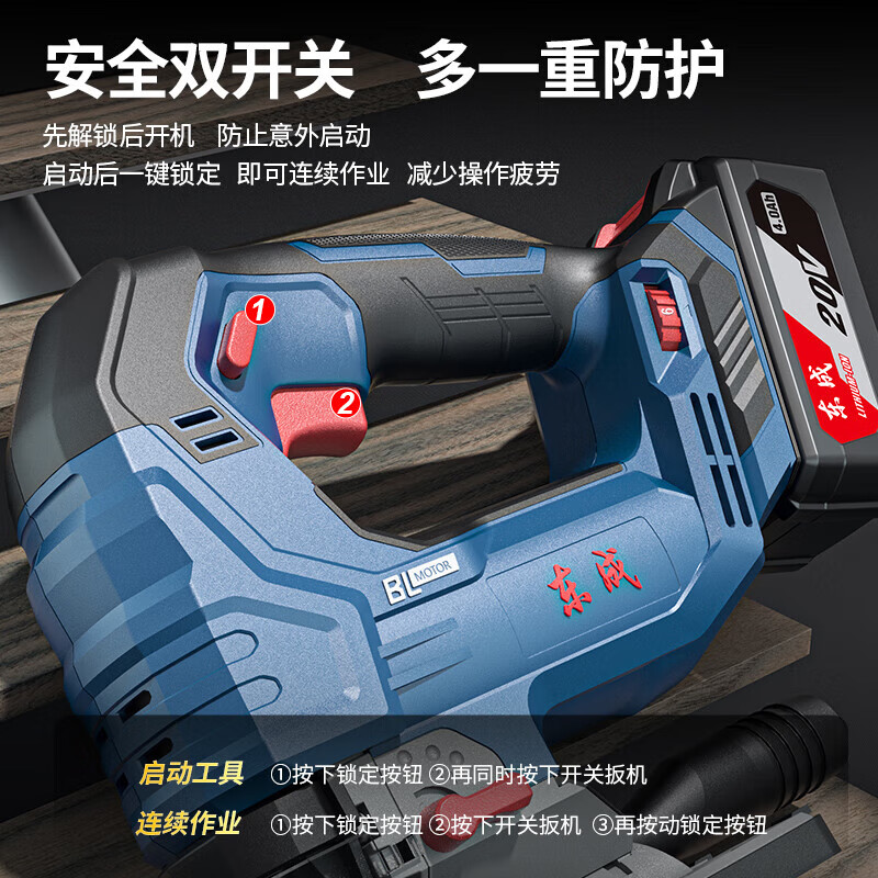 商品名称:东成充电式无刷曲线锯DCMQ85(E型)20V4.0ah*2充电式手电锯多功能
