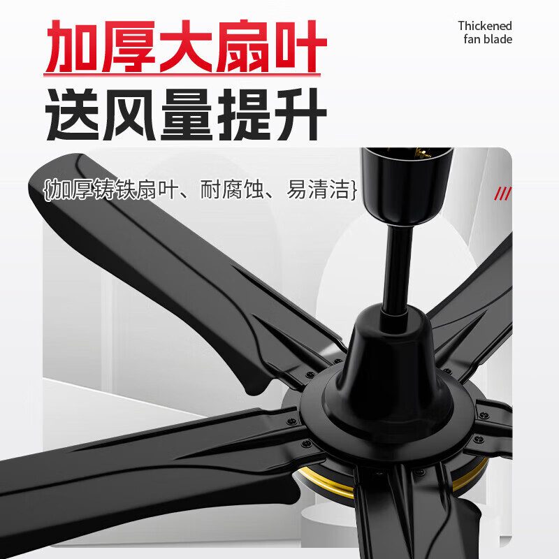 长城电风扇家用吊扇商用吊顶式风扇大风力制冷客厅餐厅宿舍学校食堂吊挂式工厂车间吸顶工业电风扇 黑色