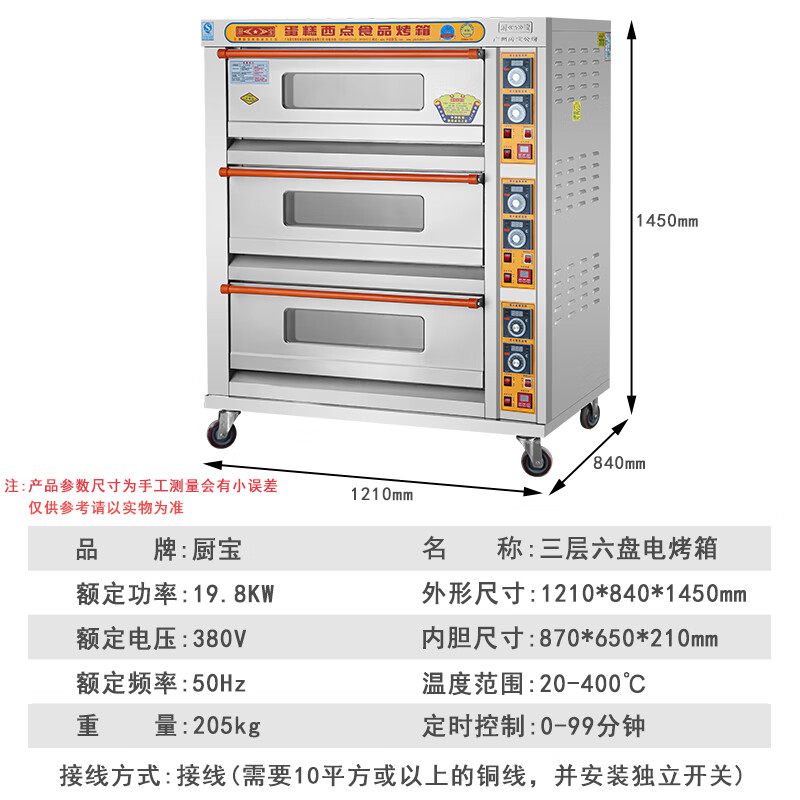 厨宝电烤箱商用电烤箱三层六盘燃气烤炉 月饼烘单层烤炉三层六盘 电烤箱