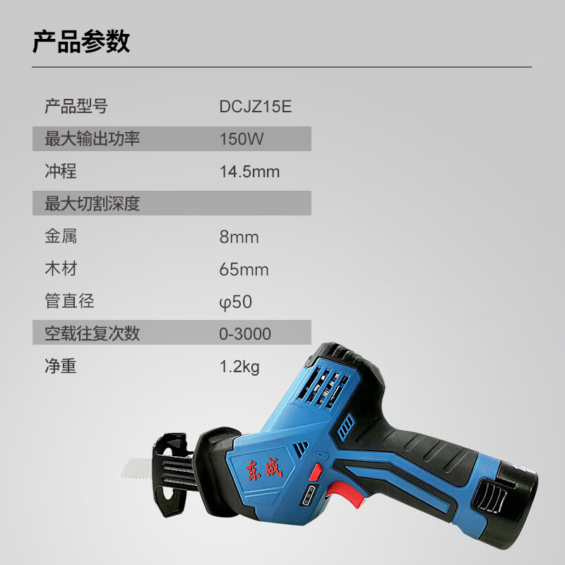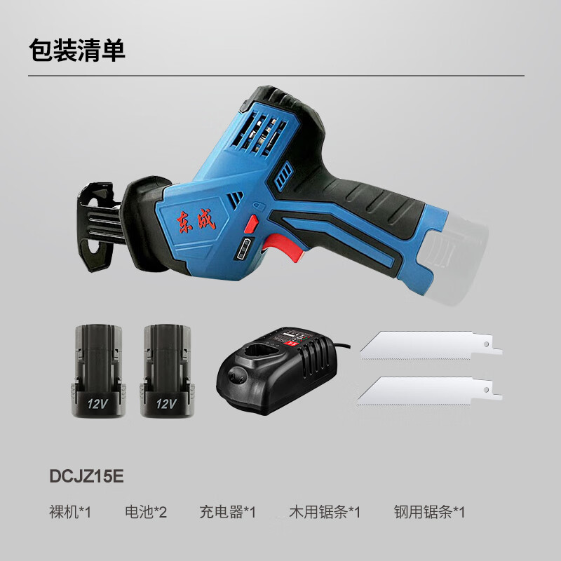 东成充电式马刀锯DCJF15(E型)12V2.0ah*2充电式电锯往复锯木工锯金属锯