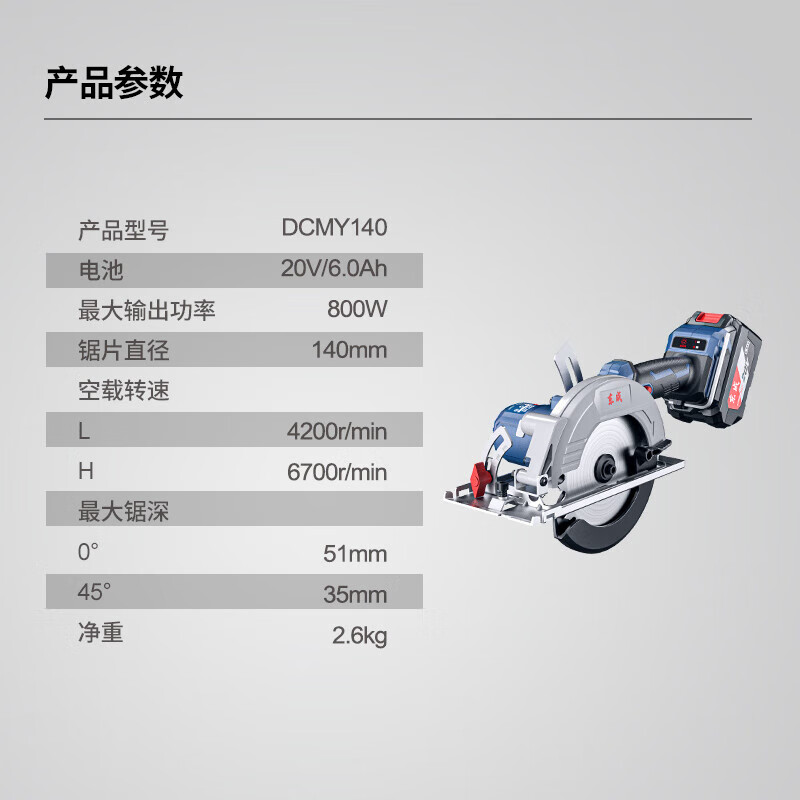 东成充电式无刷电圆锯DCMY140(H型)20V6.0ah单电无刷单手充电电圆锯