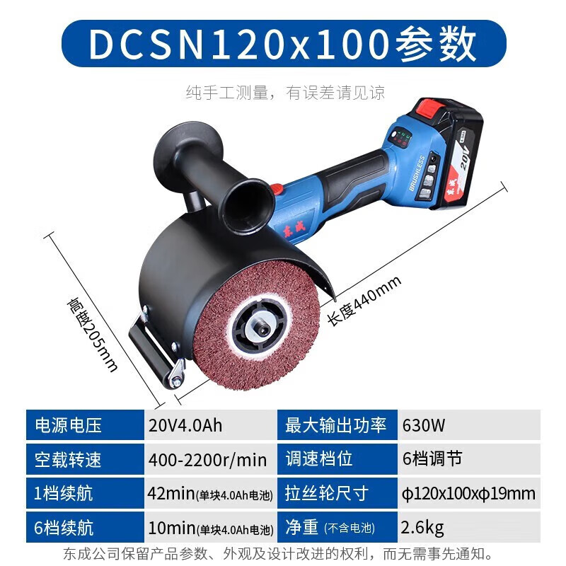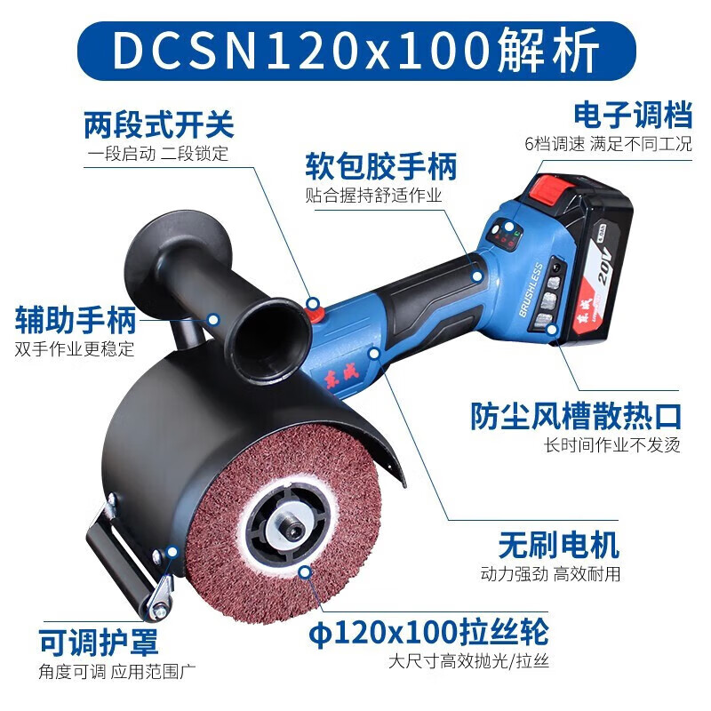 东成充电式无刷抛磨机DCSN120×100(B型)20V4.0ah*2充电电动工具