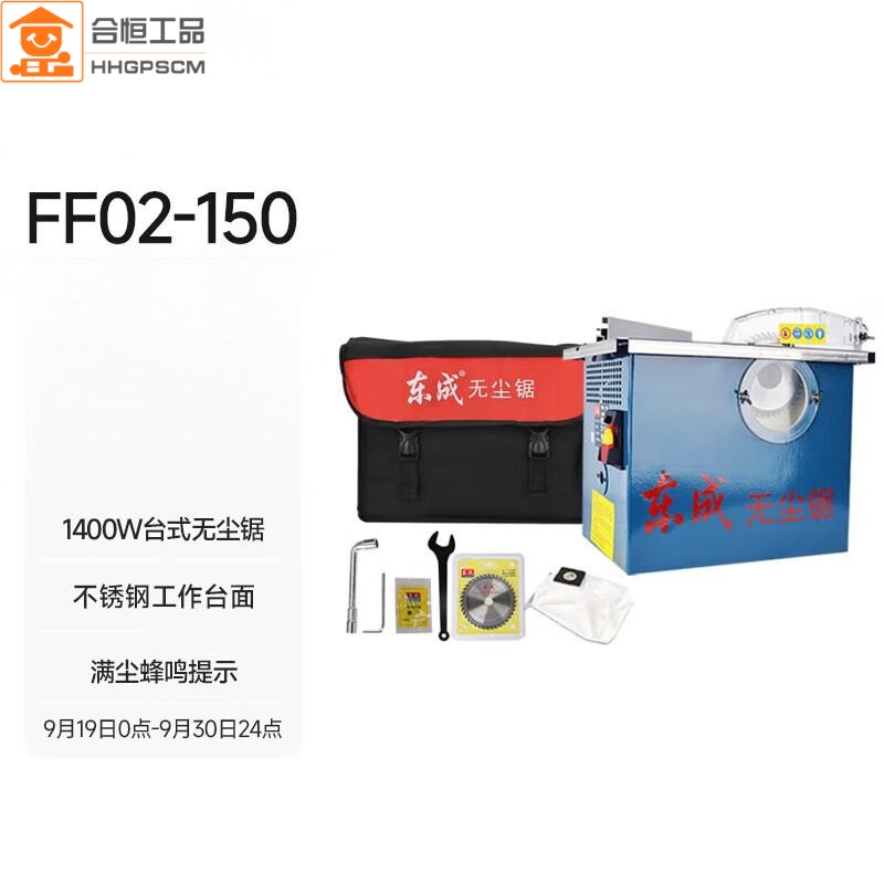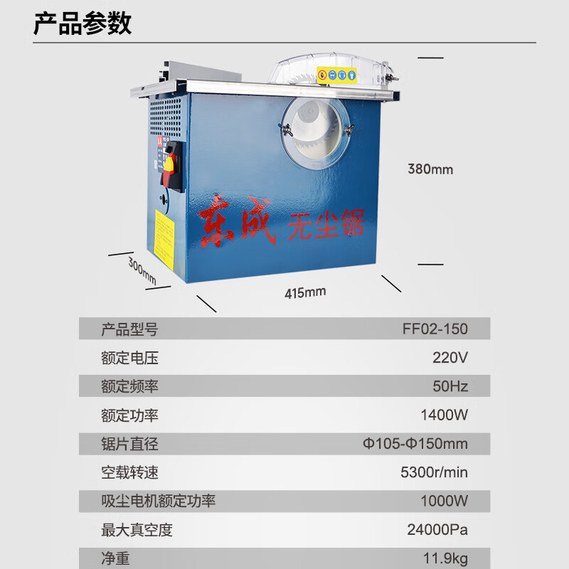 东成无尘锯FF02-150(赠碳刷1副)多功能家用台式1400W大功率电锯小型推台锯精密锯