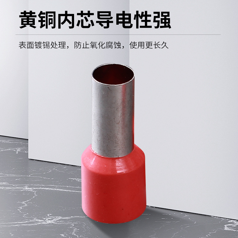 合恒工品 铜镀锡冷压接线端子VE系列管型预绝缘端头欧式铜线耳针型 铜鼻子