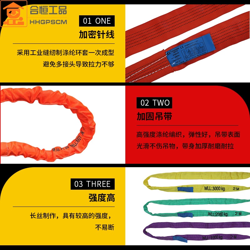 大雁彩色3T 黄色扁平吊装带涤纶起重吊带 工业6倍拉力彩色扁平吊装 国标品质规格齐全