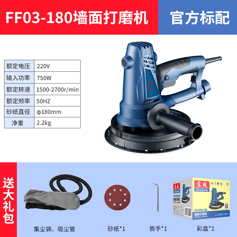 东成墙面打磨机S1F-FF03-180电动多功能砂纸机无尘吸尘抛光机