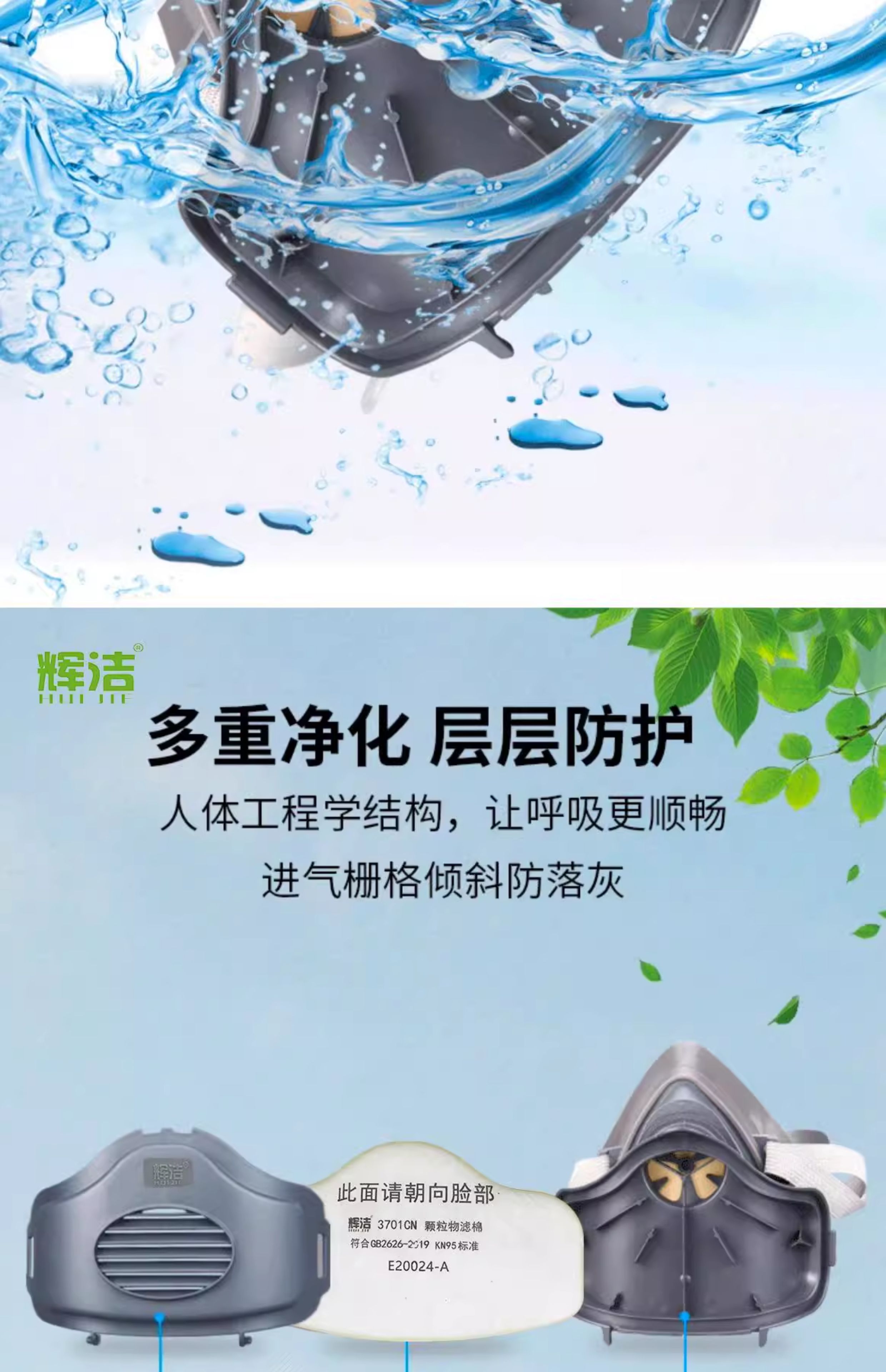 商品名称:辉洁防尘口罩 防工业粉尘重度灰尘装修打磨煤矿专用面罩 防尘口罩