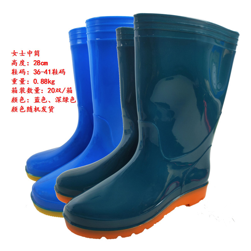合恒工品 女士中筒橡胶雨鞋 女士中筒雨鞋 28cm 蓝色