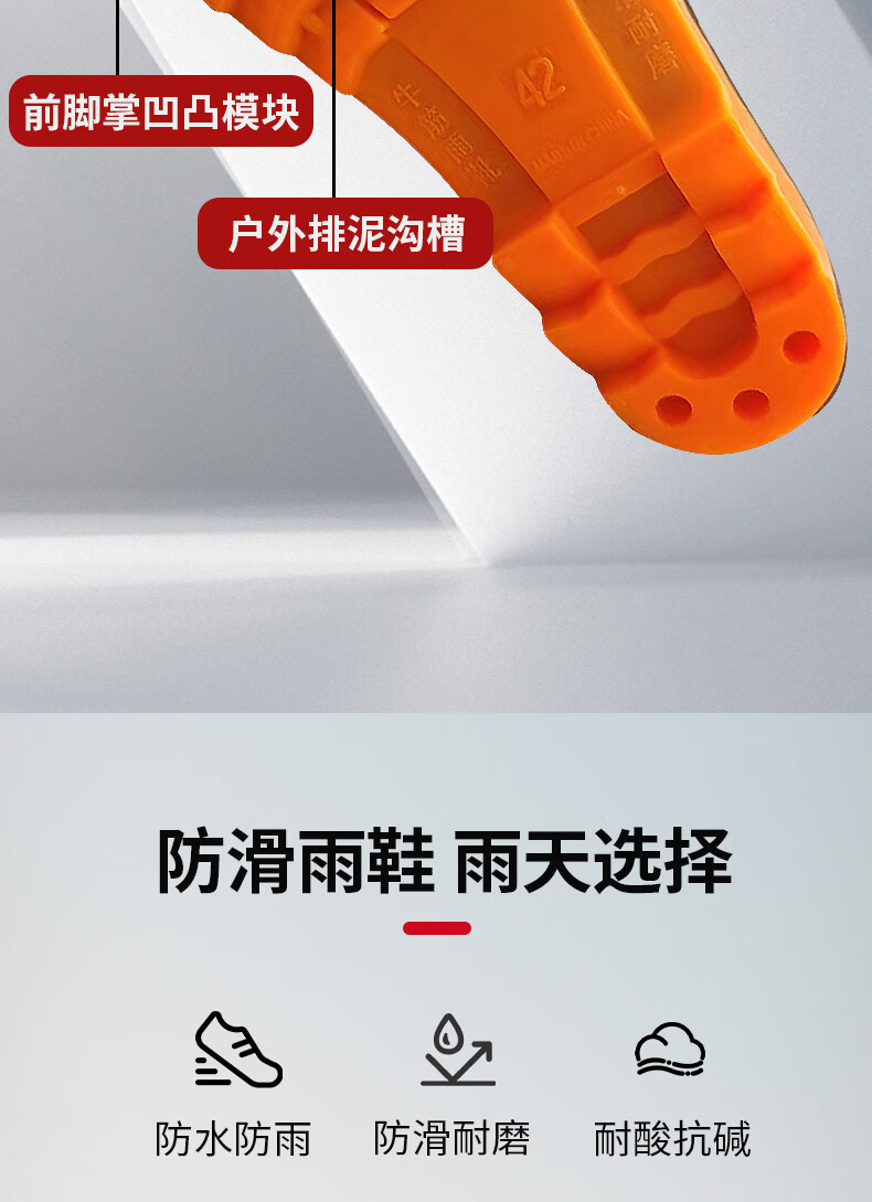 合恒工品 中筒牛筋底雨鞋 28cm 中筒牛筋底