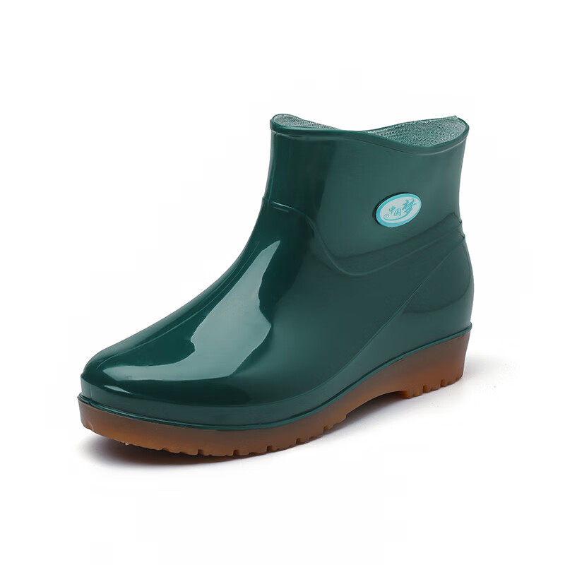 合恒工品 女士低筒橡胶雨鞋 低筒女士雨鞋18cm 低筒女靴墨绿色