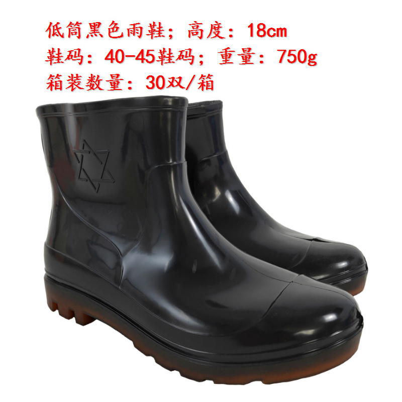 合恒工品低筒黑色雨鞋低筒男士女鞋18cm 低筒男靴黑色