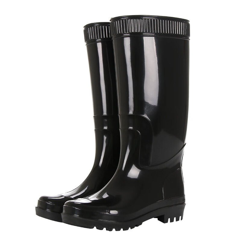 合恒工品 经济款高筒黑色雨靴 牛筋雨鞋、高筒雨鞋、雨靴 38cm 经济牛筋底高筒
