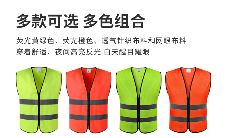 包装清单:1针织布拉链款双腰反光马甲 可定制反光背心 均码 针织布/网格布