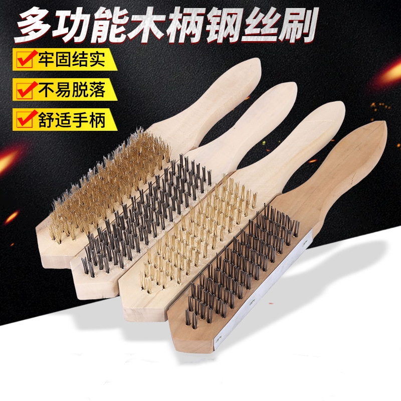 雷蒙木柄钢丝刷清洁缝隙刷除锈铁丝刷子神器木钢丝除锈刷