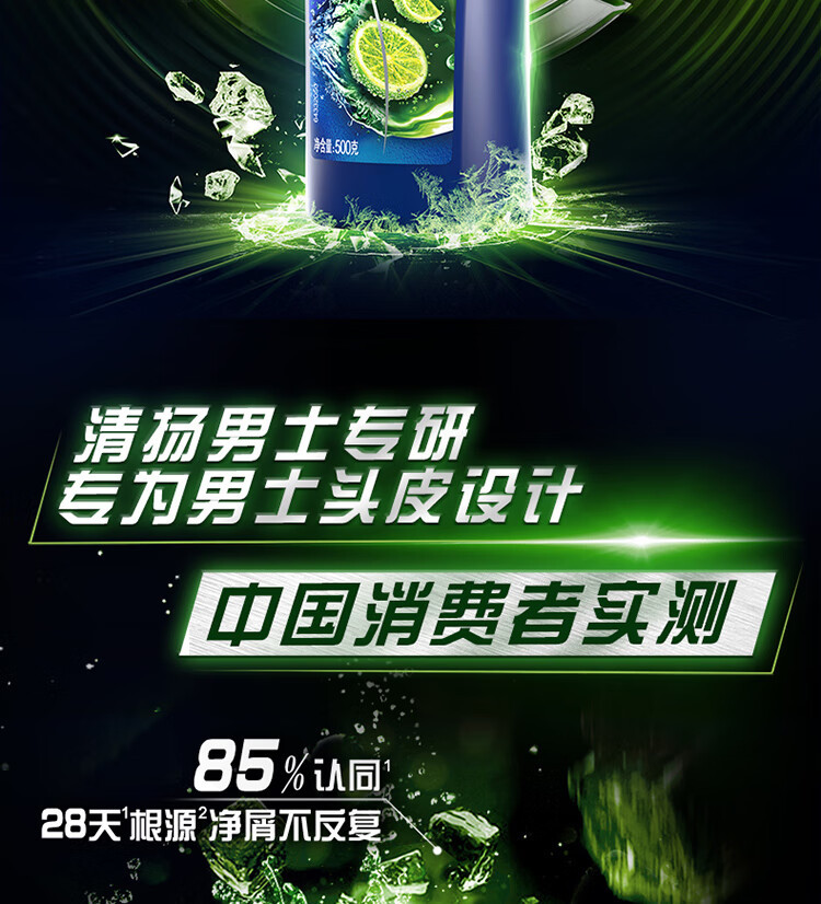 商品名称:清扬洗发水500 g控油去屑蓬松 家 大瓶装薄荷清爽控油型