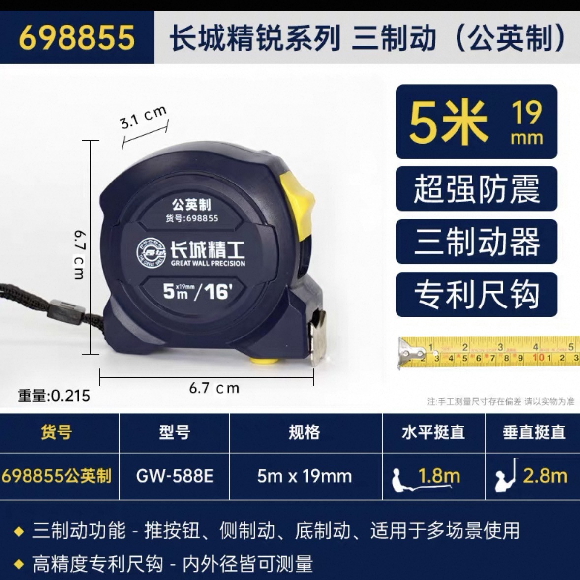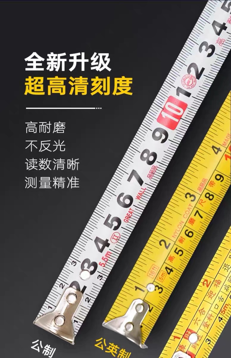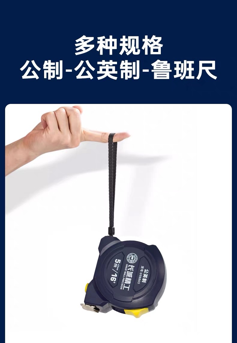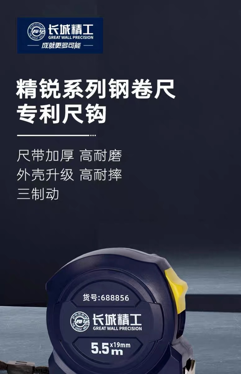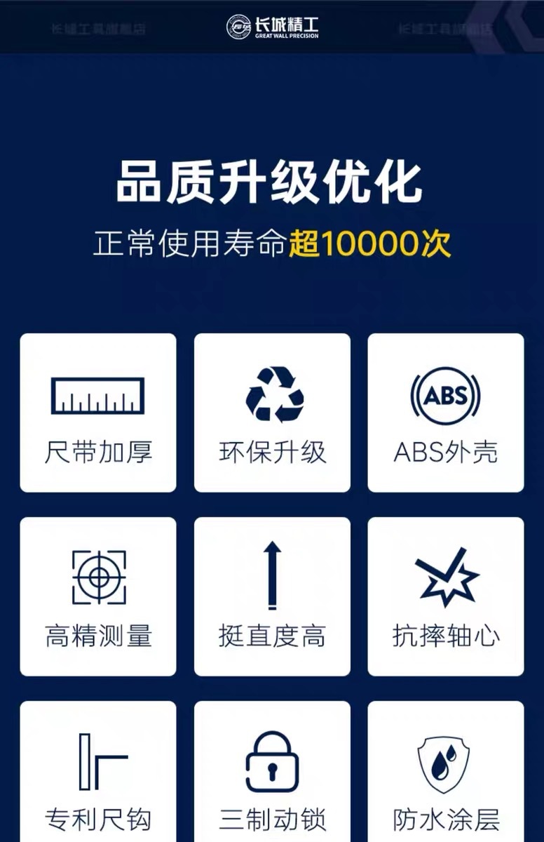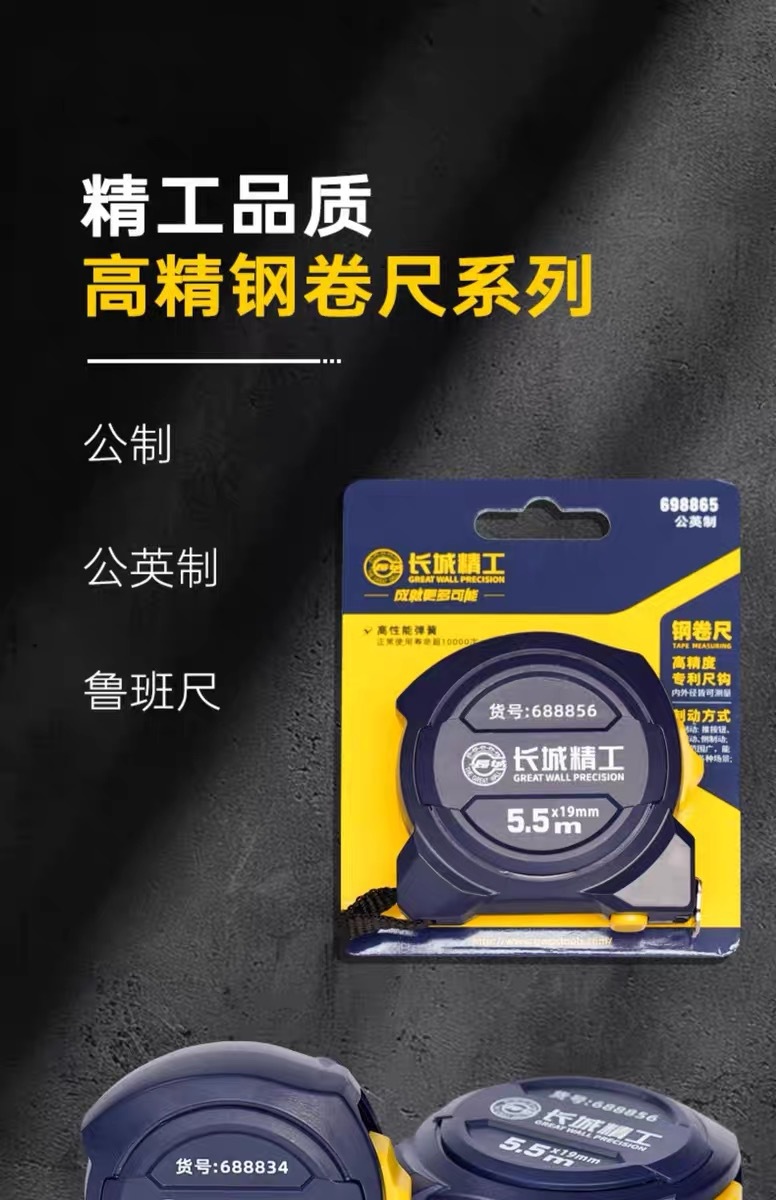 包装清单:1长城精工 盒尺 高碳钢卷尺 多功能三制动公制公英制鲁班尺