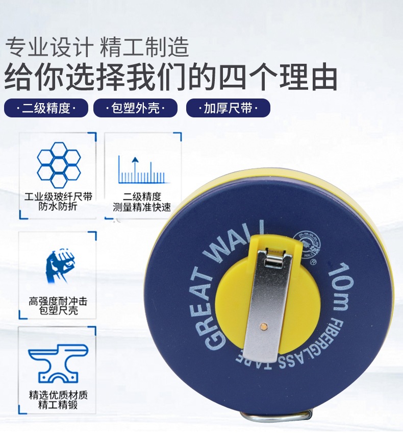 包装清单:1长城精工皮尺10米15米20米30米50m纤维卷尺皮卷尺软尺土地测量
