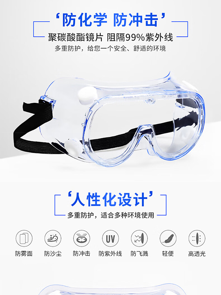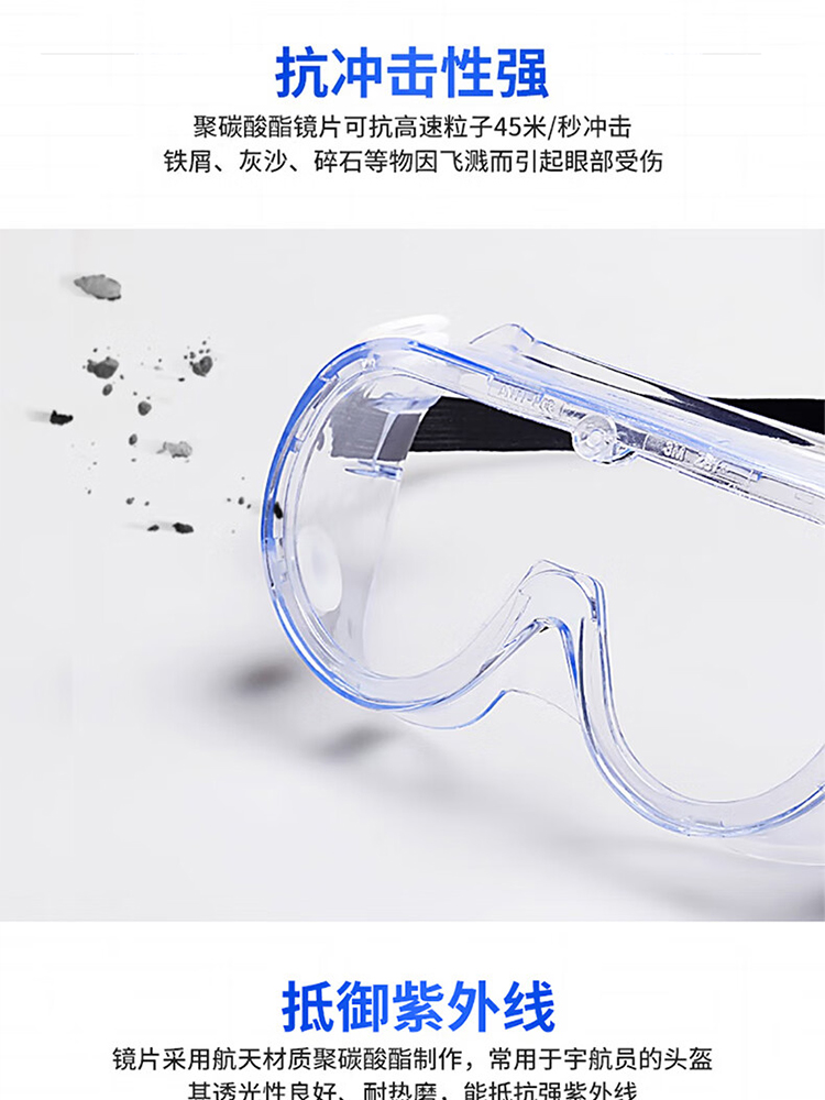 包装清单:13M 防化学护目镜 1621防冲击防化学