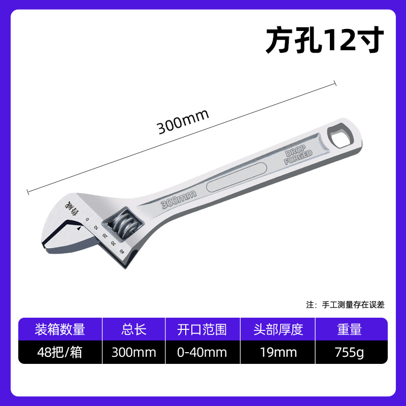 包装清单:1英迈 活动扳手工业级 12寸活动扳10寸活动板手8寸4寸活口扳手