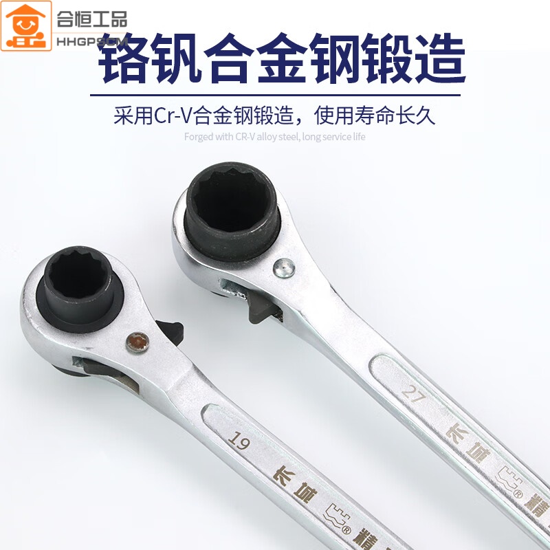 长城精工棘轮双梅花扳手自动双向快速棘轮扳手双梅花