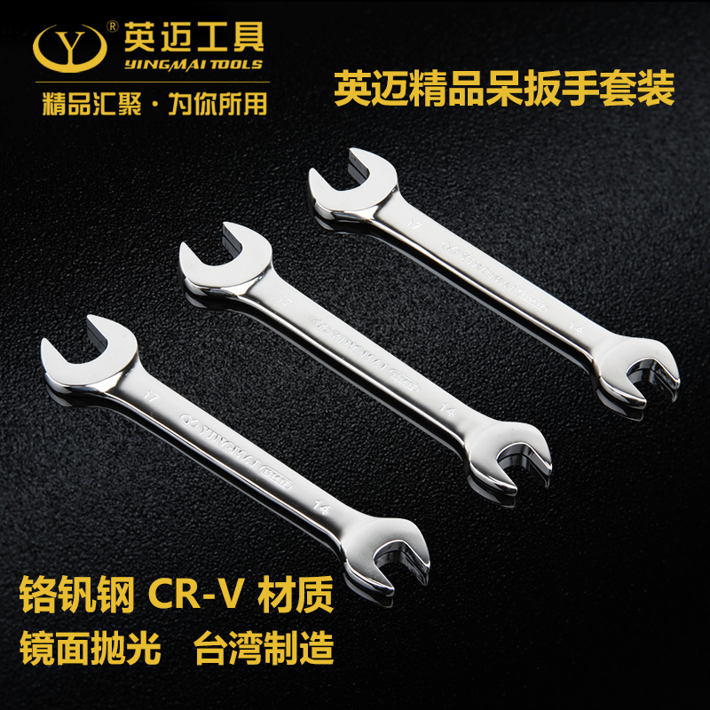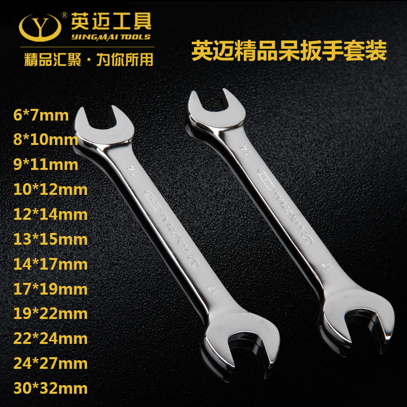 英迈铬钒钢CR-V镜面两用扳手呆扳手开口扳手双头呆扳手6-36mm