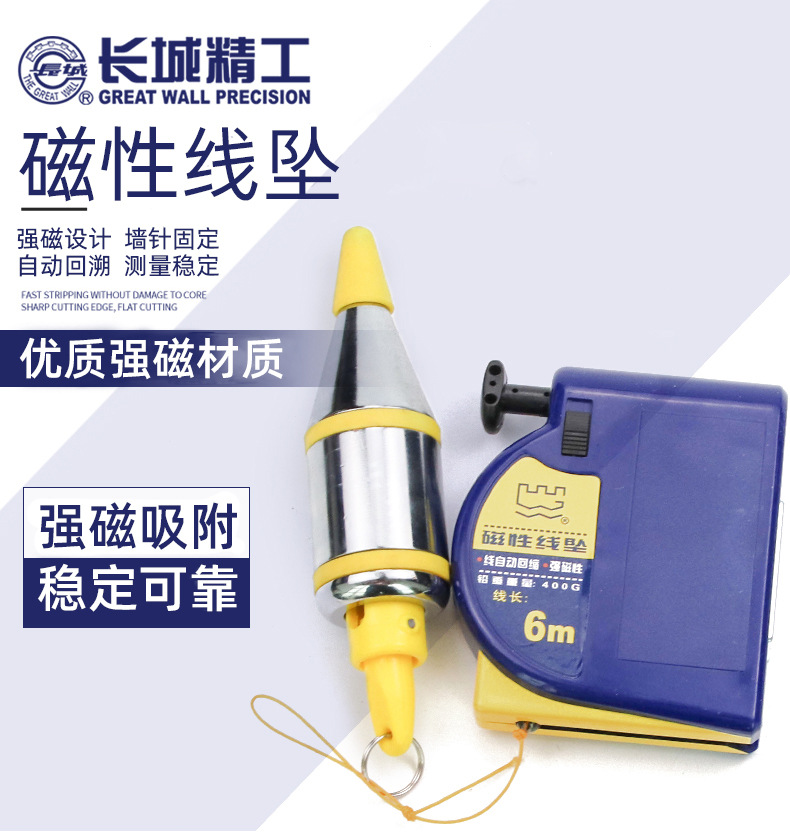 长城精工 磁性线坠磁力吊锤掉线 锤木工吊线坨 自动收线锤