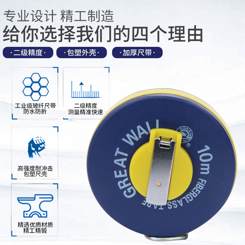 长城精工皮尺10米15米20米30米50m纤维卷尺皮卷尺软尺土地测量