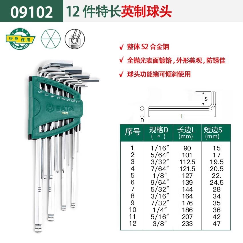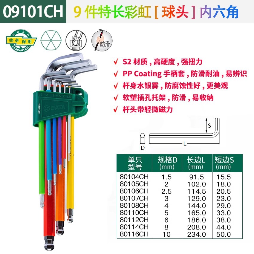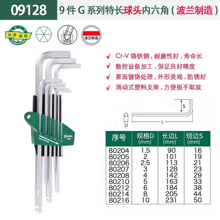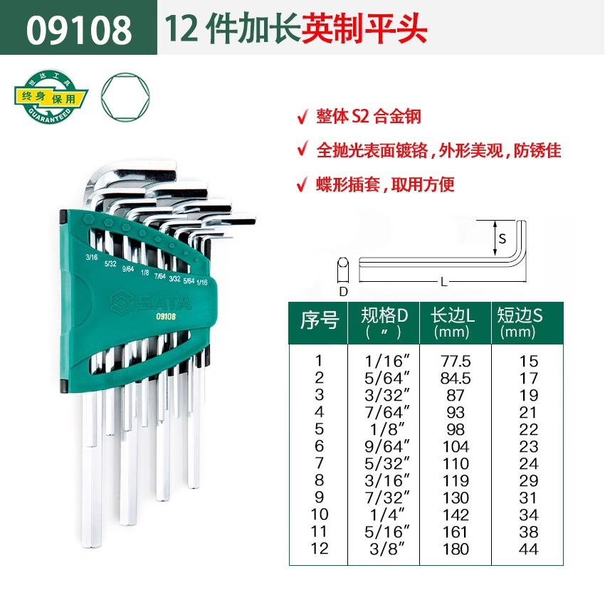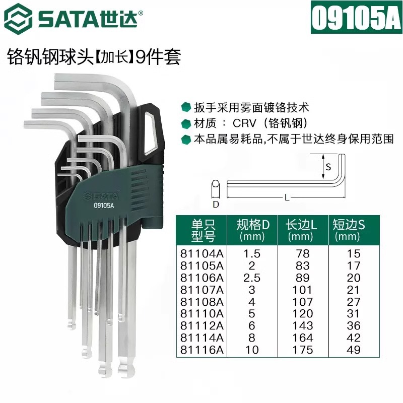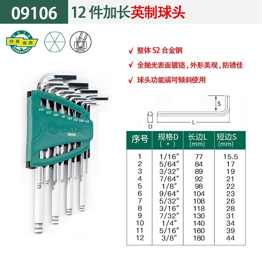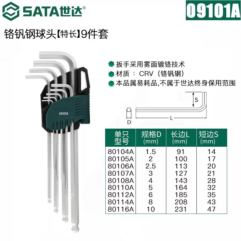 包装清单:1世达 内六角扳手套装 六角螺丝刀 六棱工具六角匙