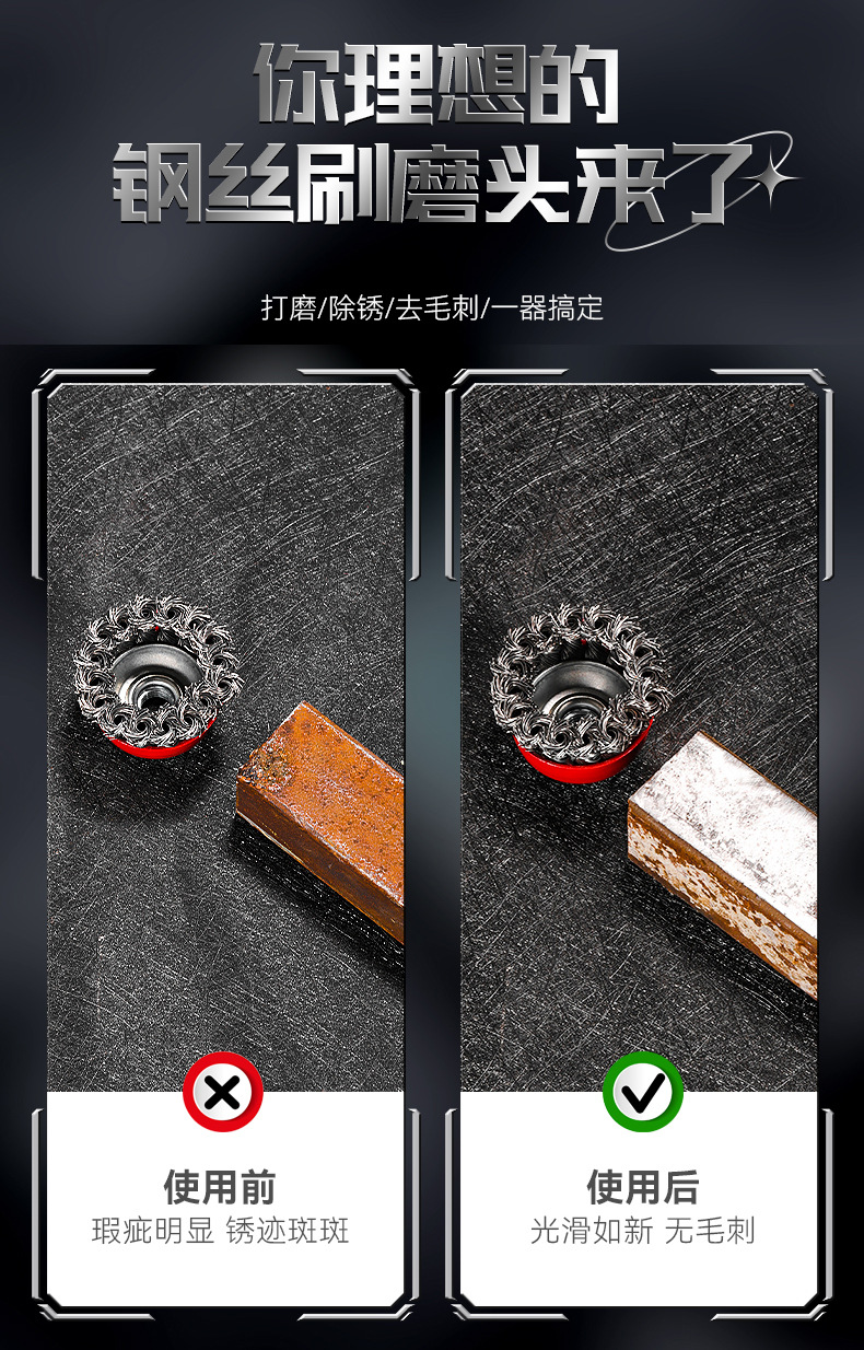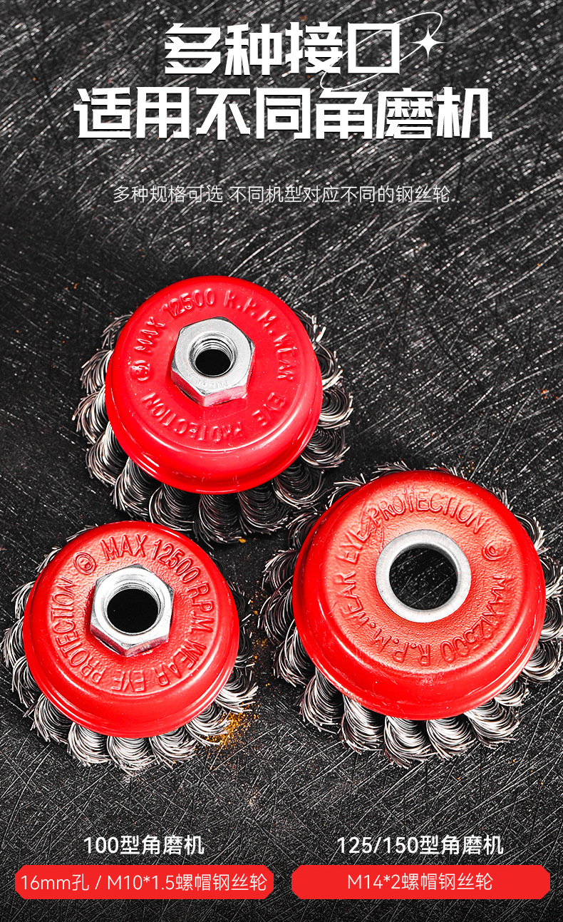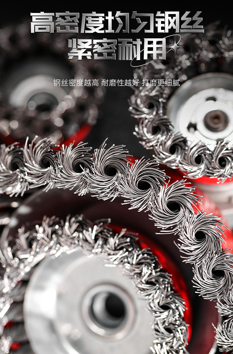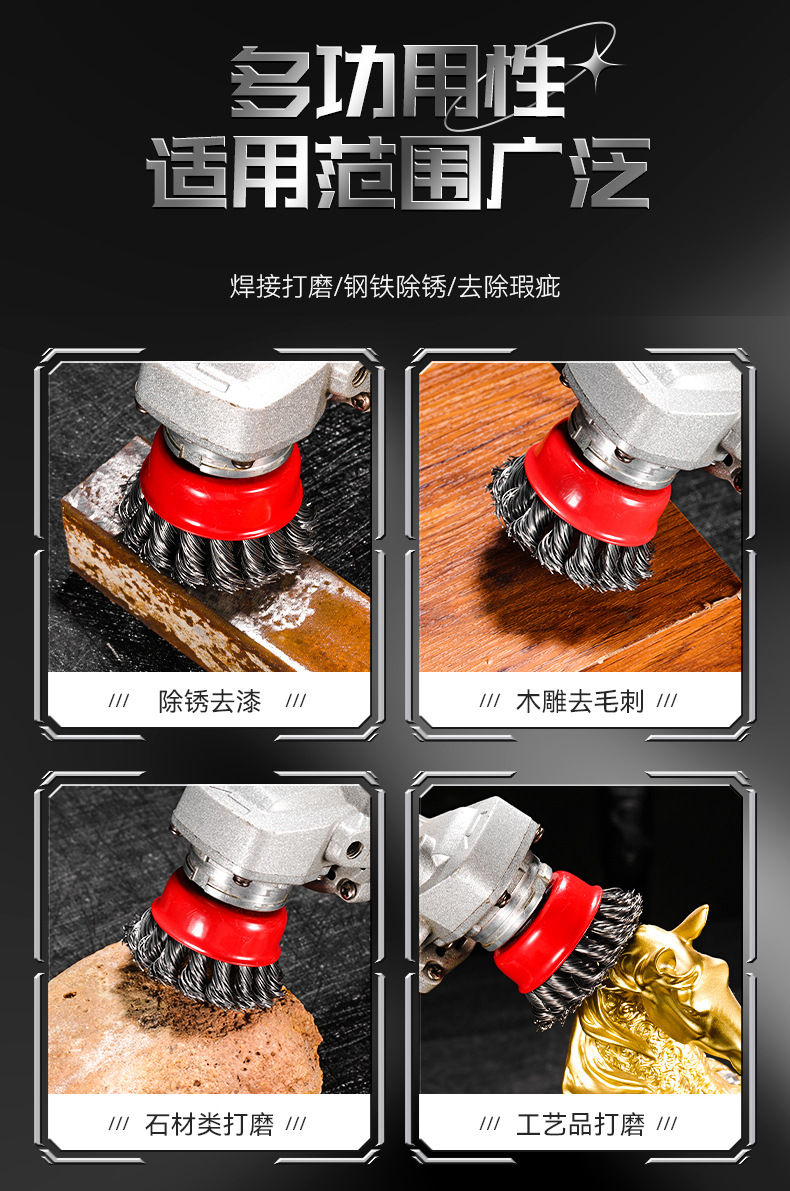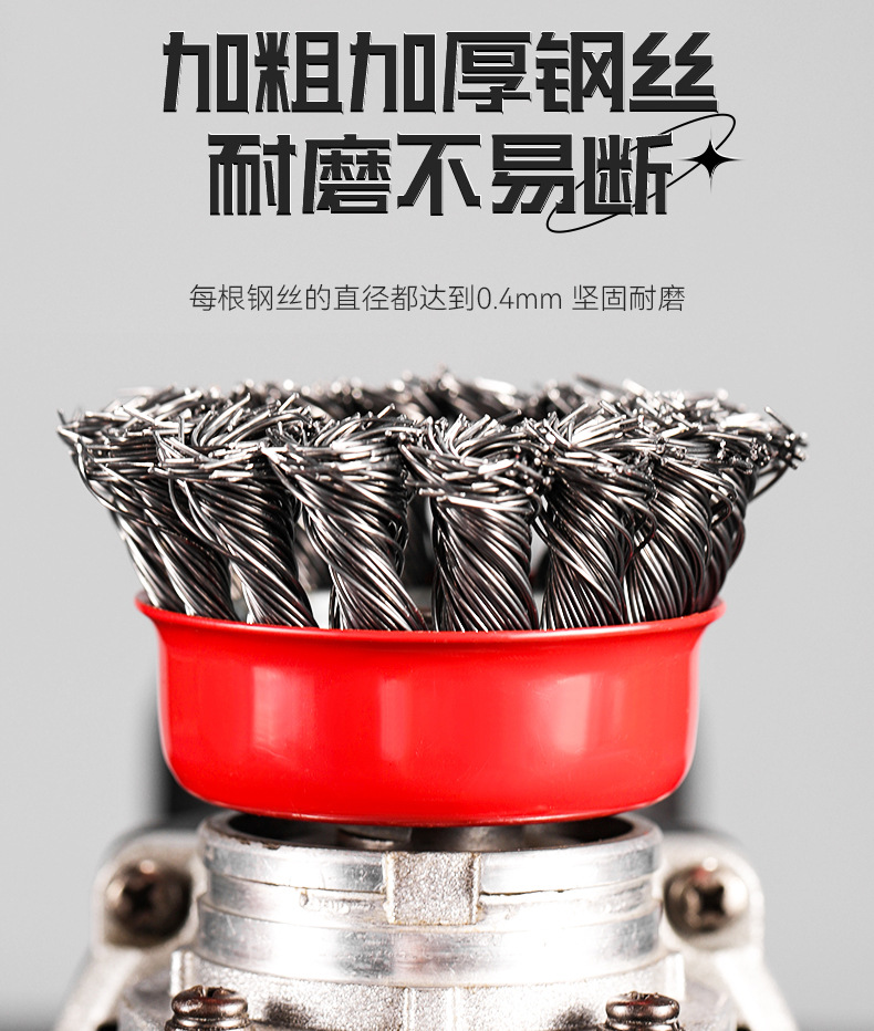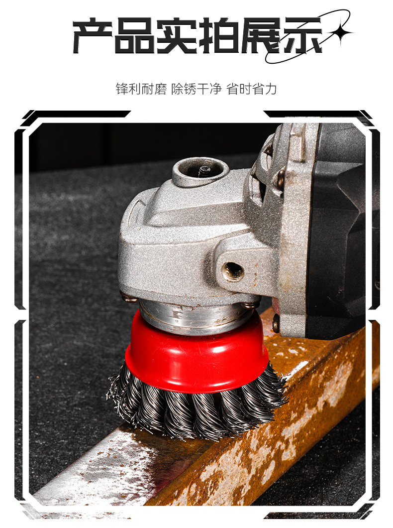 包装清单:1雷蒙扭丝碗型钢丝轮3寸4寸5寸抛光 打磨 碗刷 打磨轮碳钢钢丝轮