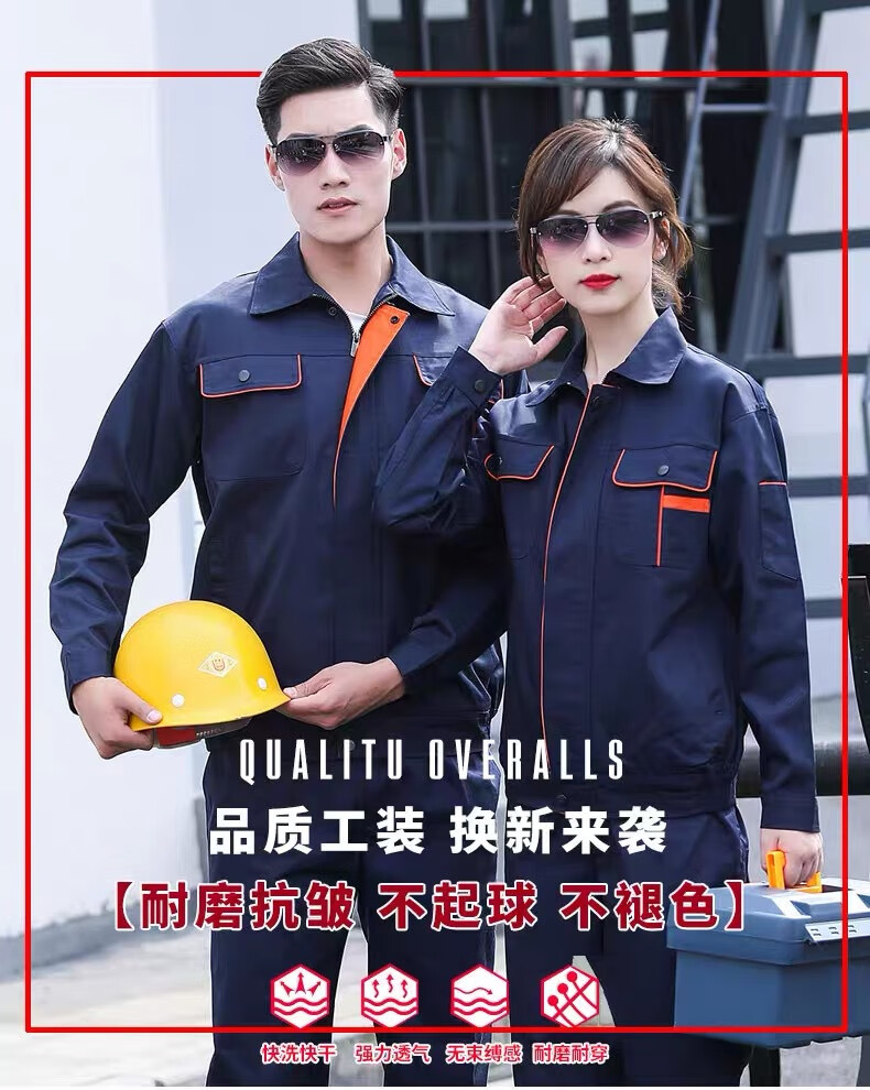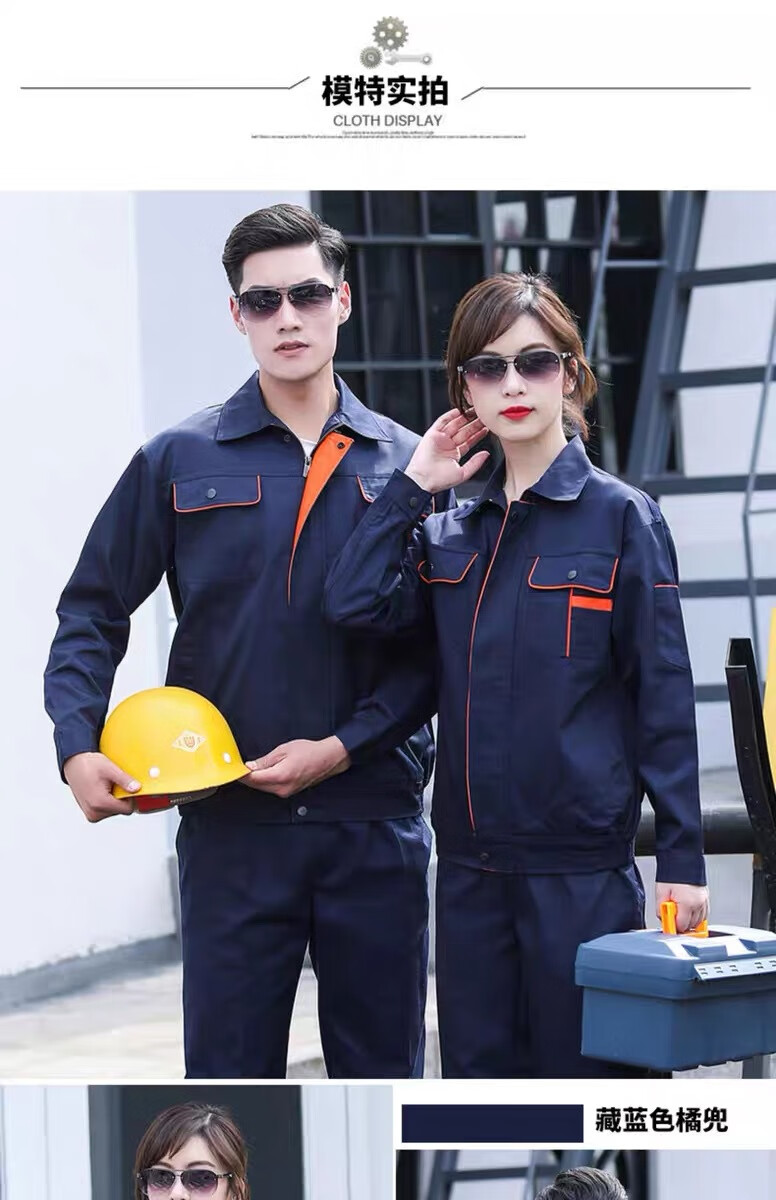 商品名称:合恒工品 涤丝套装 涤丝工装 藏青/宝蓝/灰色/天蓝/橘色M-XXXXL