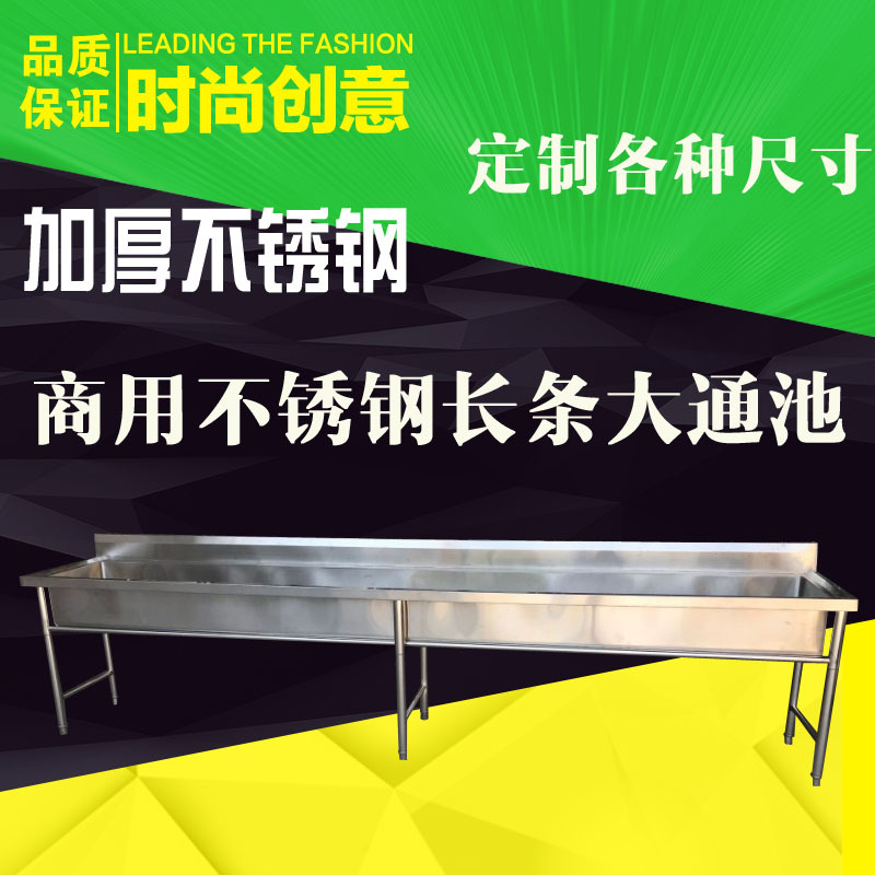 汇泉 商用304不锈钢通池大长条水槽 幼儿园工地食堂洗手池加长加大特厚