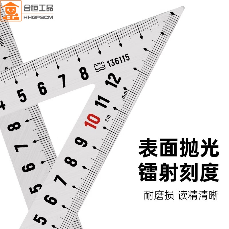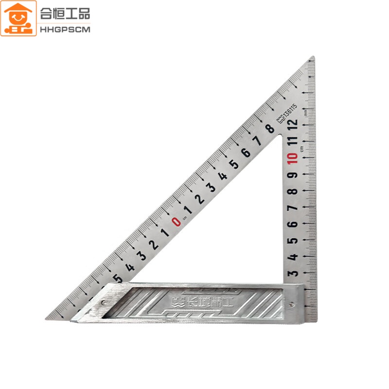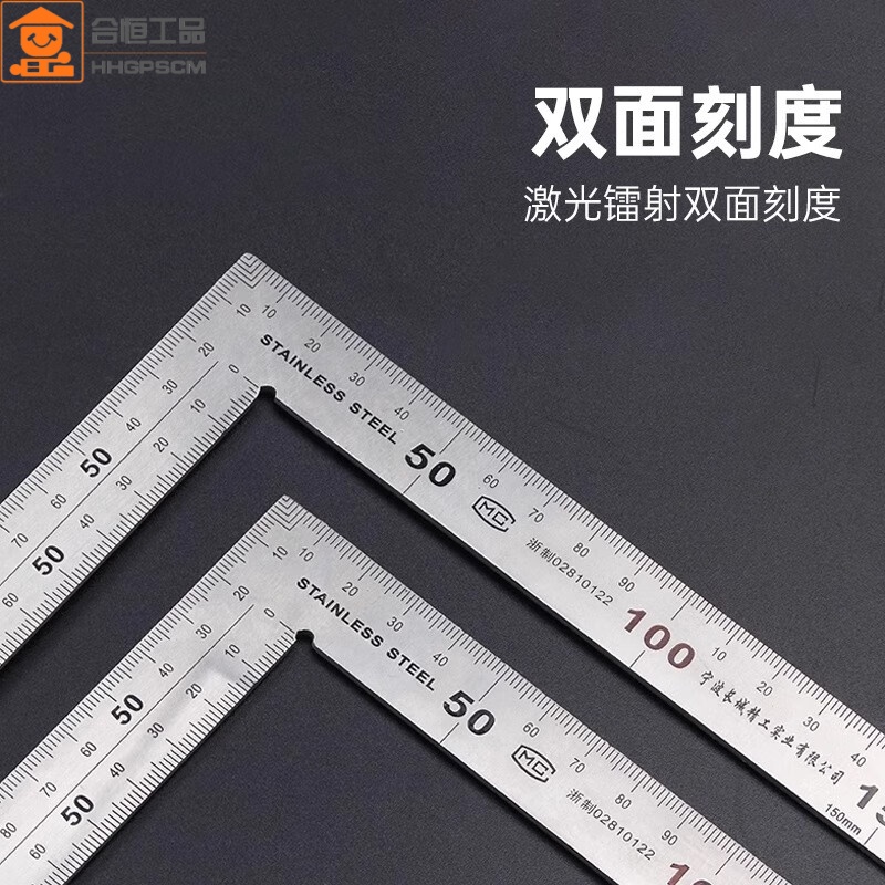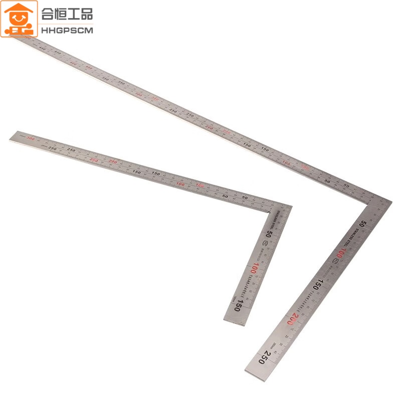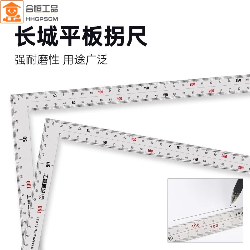 长城精工锌合金座不锈钢角尺加厚不锈钢尺体双面大字描红读数清晰方便