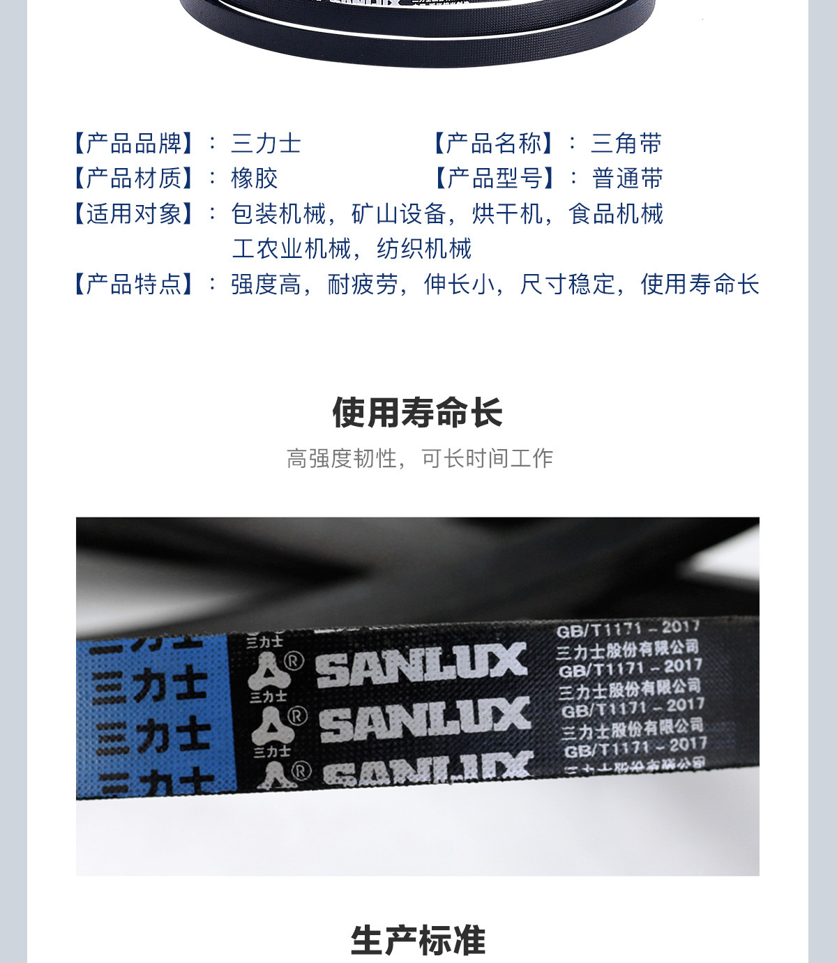 商品名称:三力士 三角带B型皮带 风机皮带空压机工业机器传动皮带