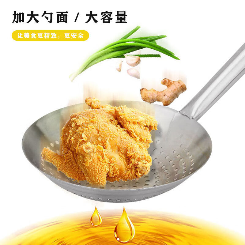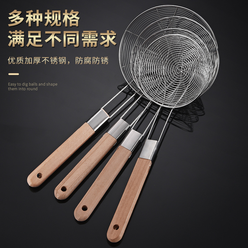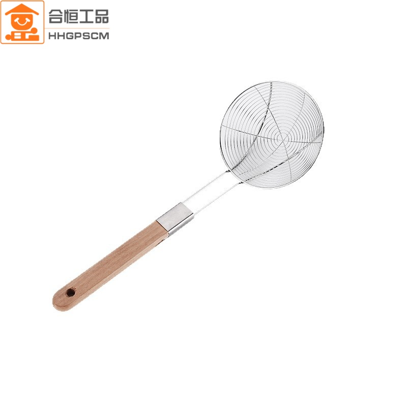 合恒工品笊篱不锈钢漏勺木柄加长漏勺过滤网笊篱捞面勺厨房商用捞篱大炸勺线漏