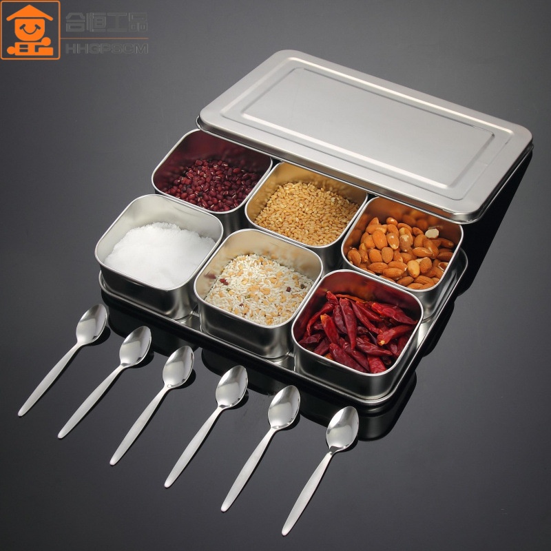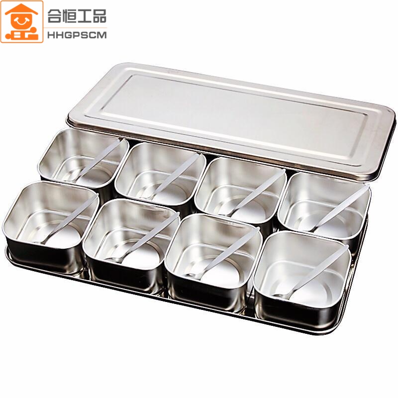 合恒工品调料盒不锈钢方形6盒套装调味罐佐料留样盒