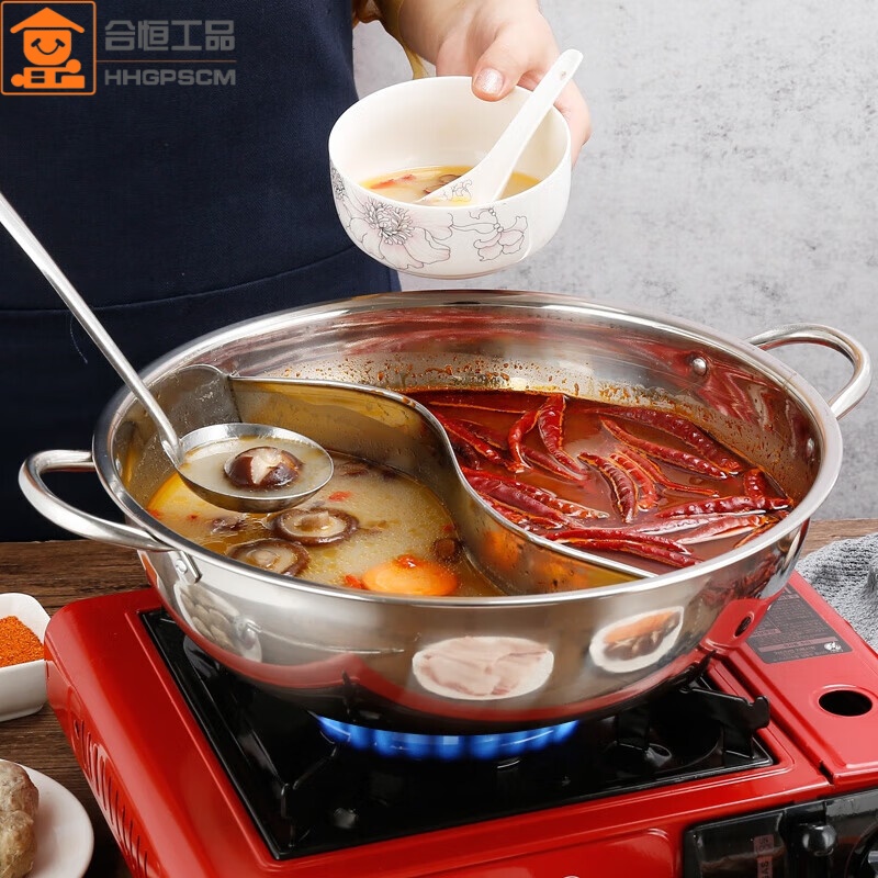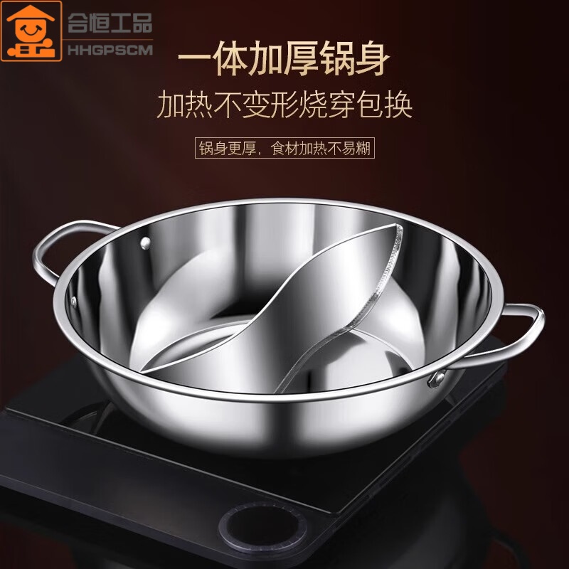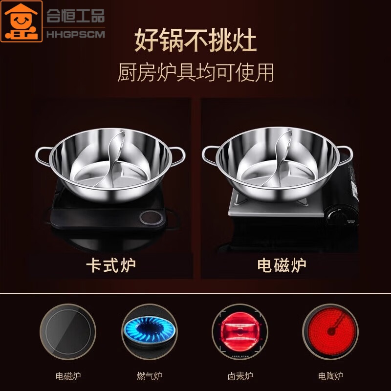 合恒工品不锈钢鸳鸯锅201不锈钢火锅锅具适用于各种场景 电磁炉燃气灶 炭火