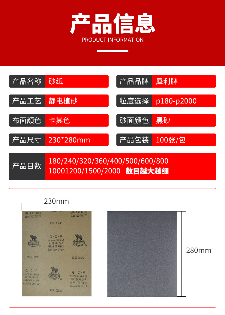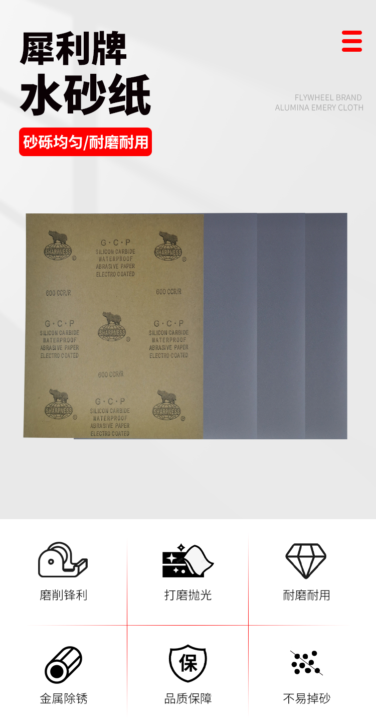 商品名称:犀利碳化硅水砂纸碳化硅纸砂粒锋利磨削持久砂纸