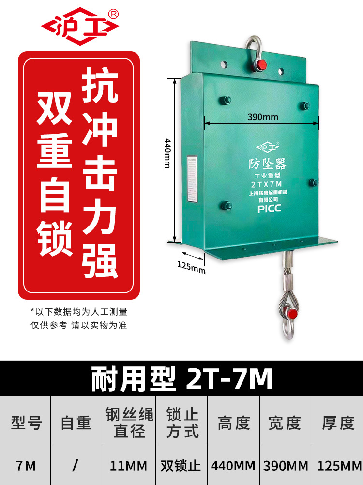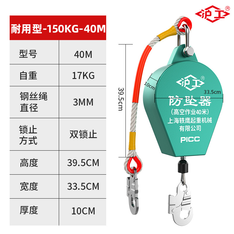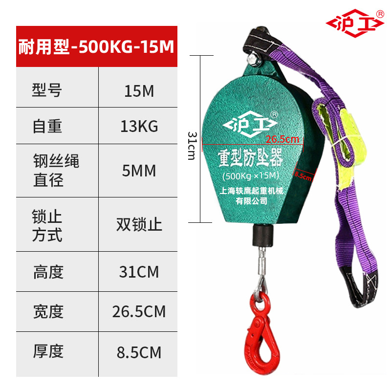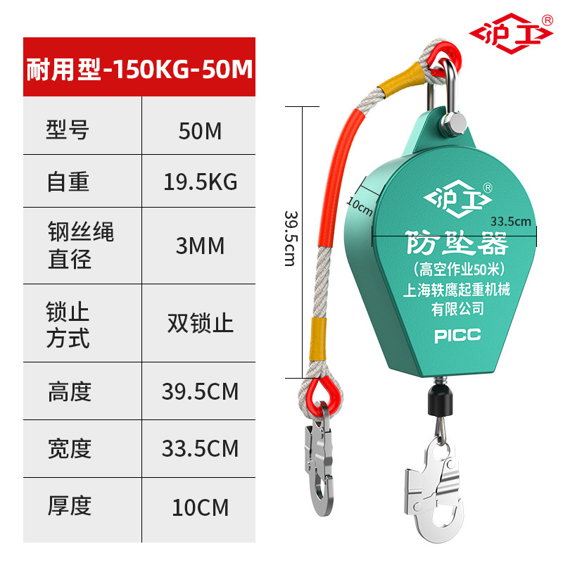 商品名称: 沪工速差自锁器 双锁止防护 安全绳高空作业器 防坠器