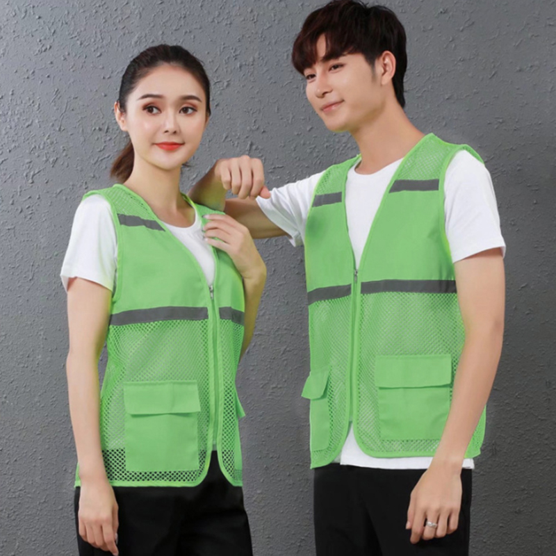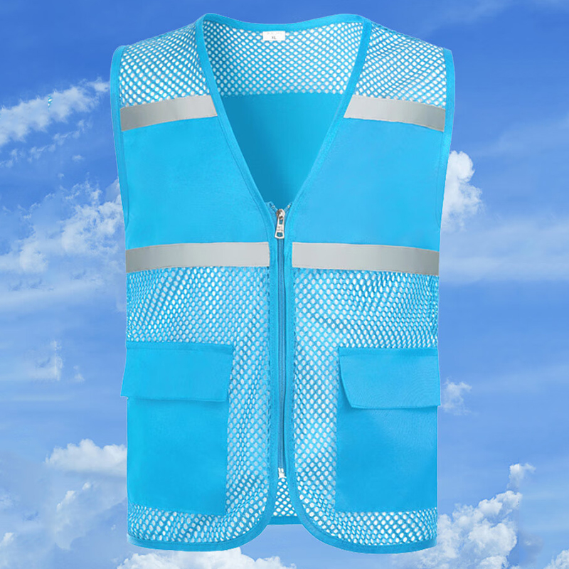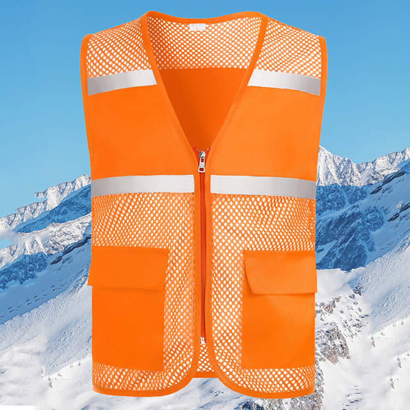 针织布拉链款双肩双腰反光马甲 网格布反光背心 均码