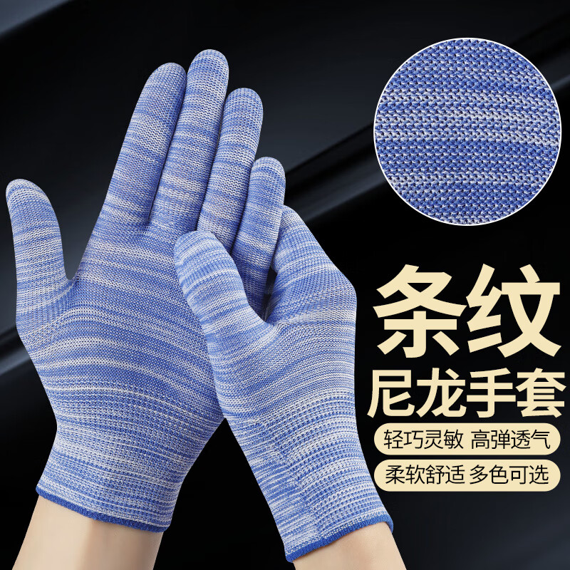 条纹夏季尼龙线手套薄款 线手套 多种颜色