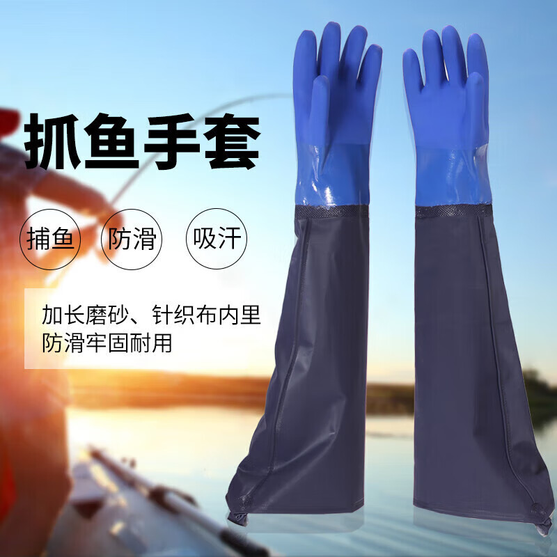 合恒工品 乳胶手套 水产手套、洗车手套 70cm 洗车水产手套 蓝色