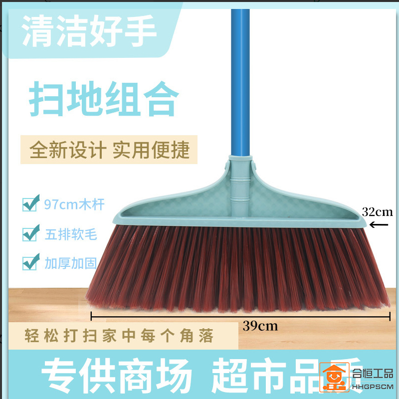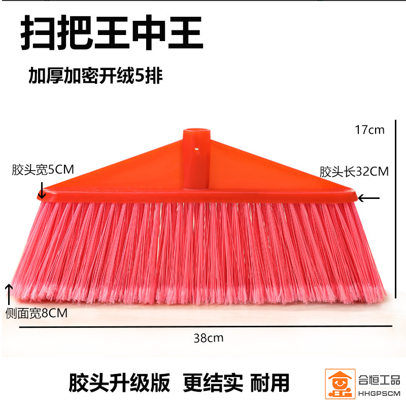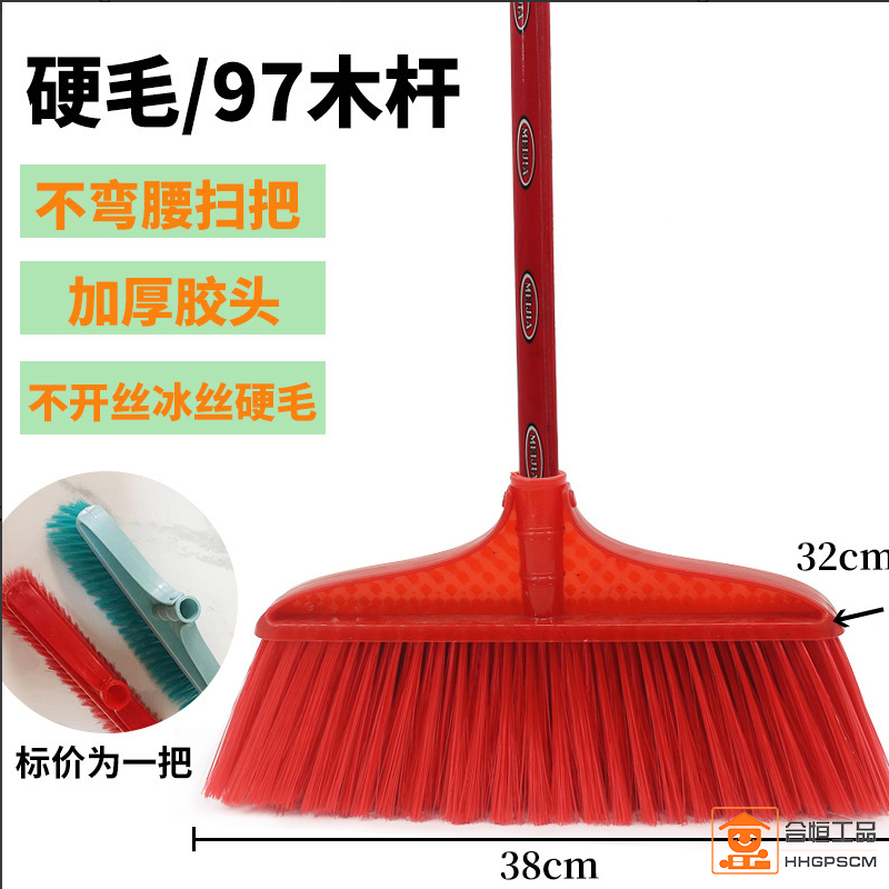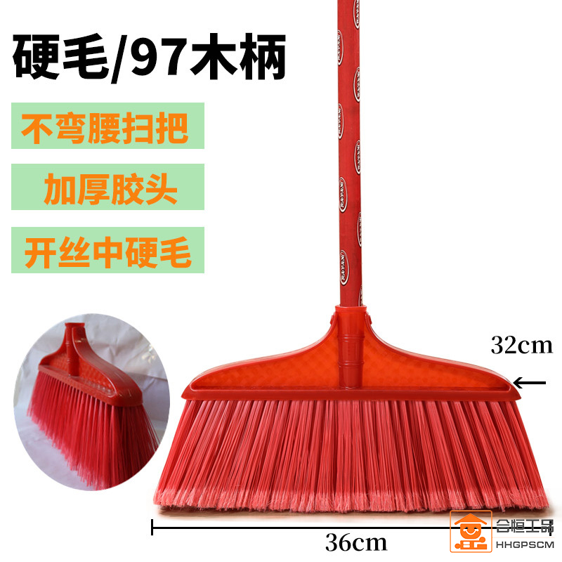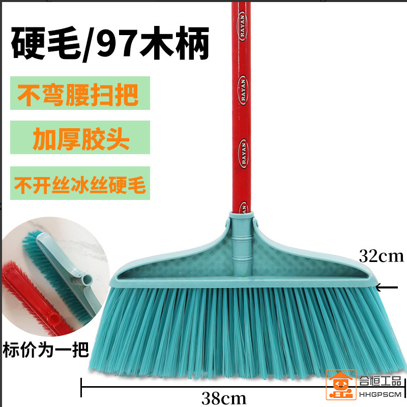 包装清单:1雷璟 硬毛塑料扫把 清洁环卫扫水扫帚 开丝四排硬毛头