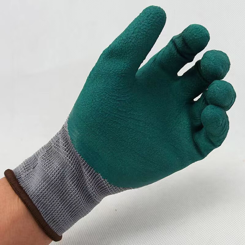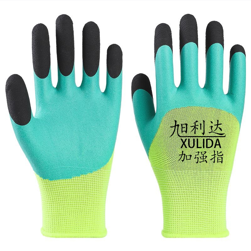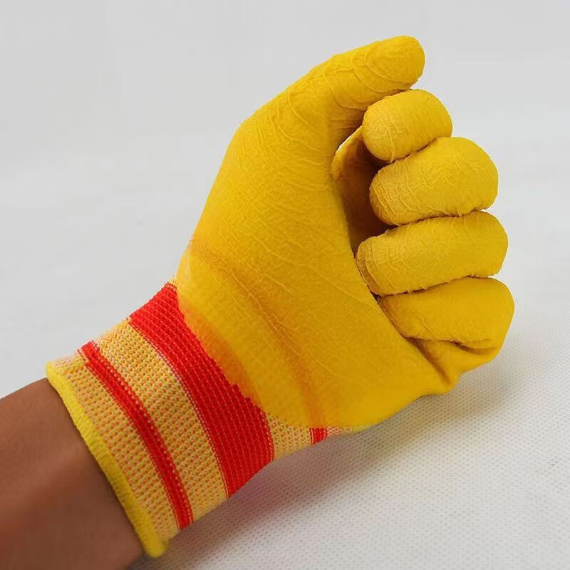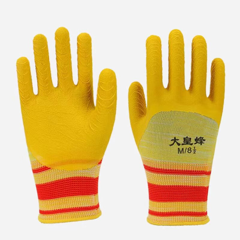 旭利达 透气王加强指乳胶发泡浸胶劳保手套 大黄蜂半挂皱纹手套浸胶劳保防护手套