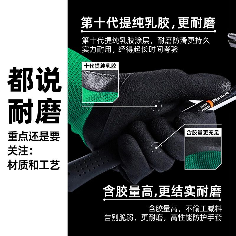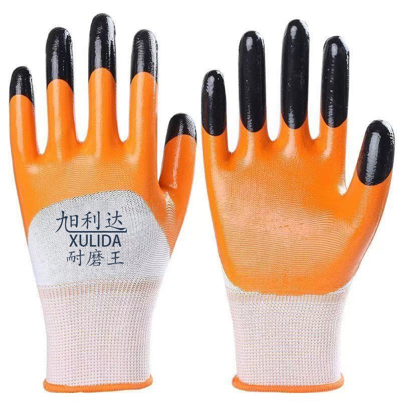 旭利达 丁晴加强指劳保手套耐磨工作防滑加厚橡胶防水耐油 丁晴加指(耐磨王)