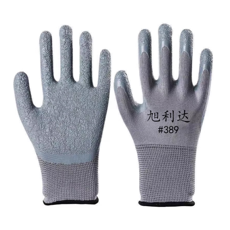 旭利达 389耐磨皱纹劳保手套浸胶防滑胶手套 皱纹389胶手套